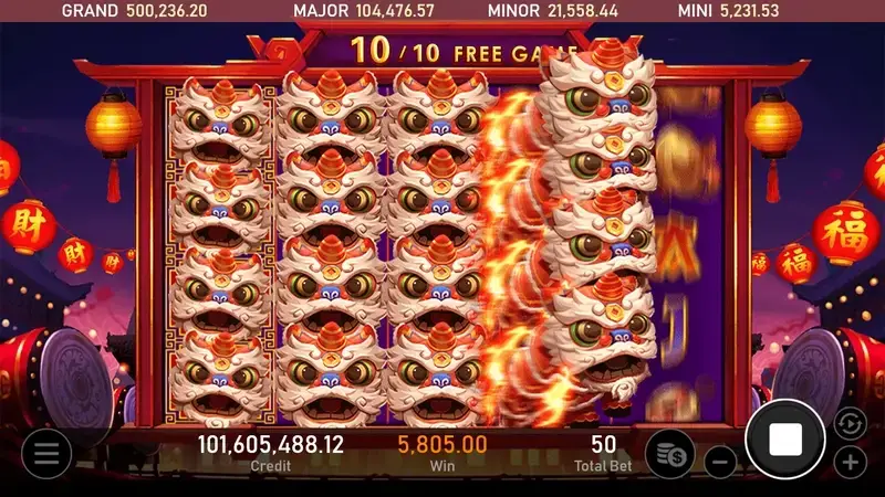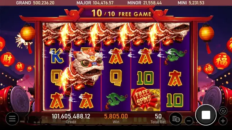 體驗中國風情的盛大慶典,伴隨歡慶鑼鼓的節奏,讓您身臨其境!免費遊戲符號全軸皆有,只需要3個就能啟動免費遊戲。 免費遊戲期間,跳跳獅符號一現身將會立即轉換為百搭符號,每一回合都會向右跳動,伴隨您至免費遊戲結束。鼓聲齊鳴,可愛萌獅連連跳,讓你大獎連連贏! 與跳跳獅一同歡慶,享受中國風的賀歲樂趣吧!----- Royal Slot Gaming RSG 娛樂城合作首選