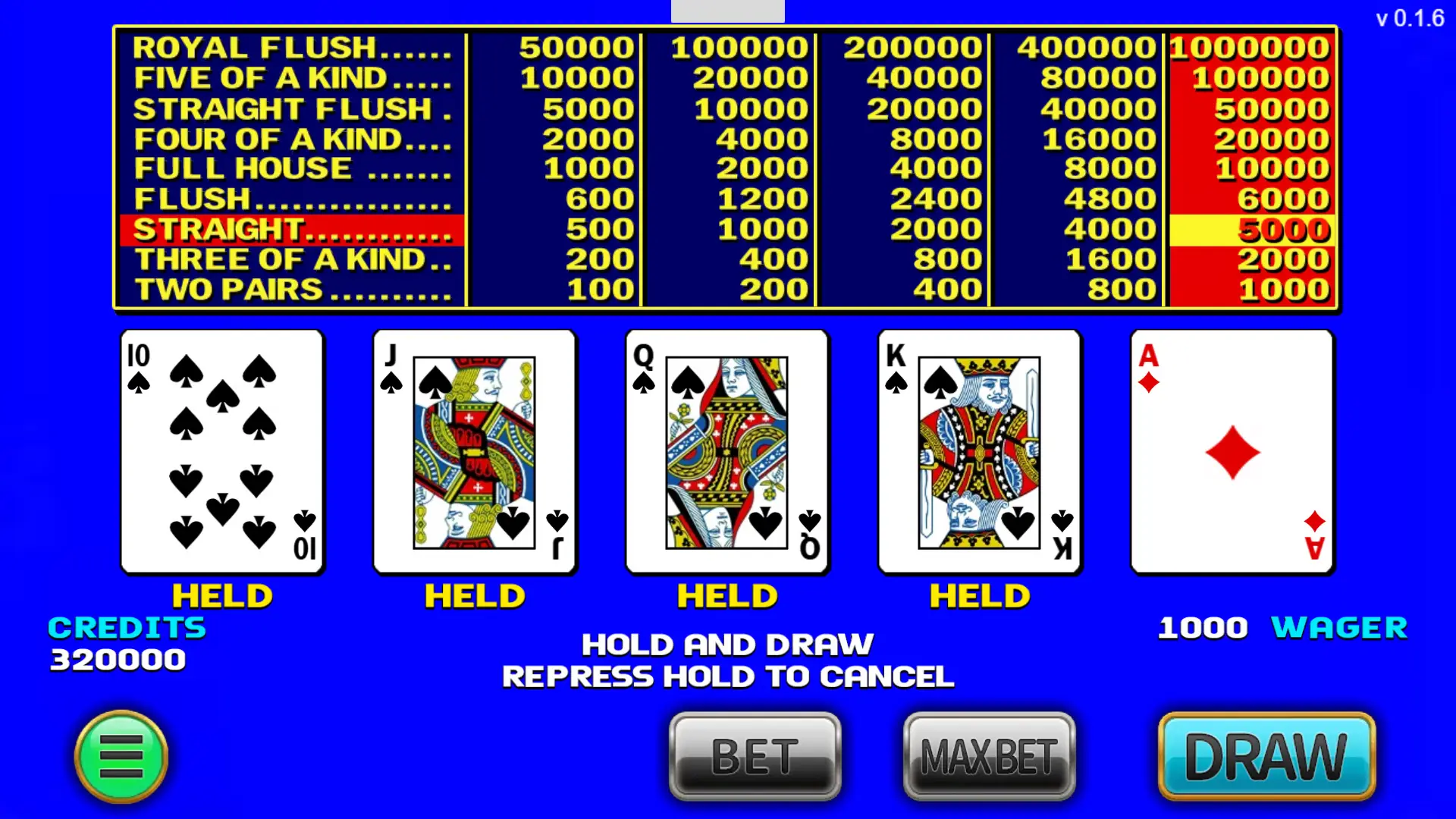 懷舊的電子紙牌遊戲,喚起您昔日的樂趣與回憶。在這款遊戲中,玩家將獲得五張初始牌,並可選擇保留心儀的牌,再進行換牌操作,將未保留的牌重新派發新牌。最終根據牌型計算賠率,並獲得相應的獎勵。更有刺激的比倍功能,讓您有機會將獎勵翻倍,贏得更多! ----- Royal Slot Gaming RSG 娛樂城合作首選